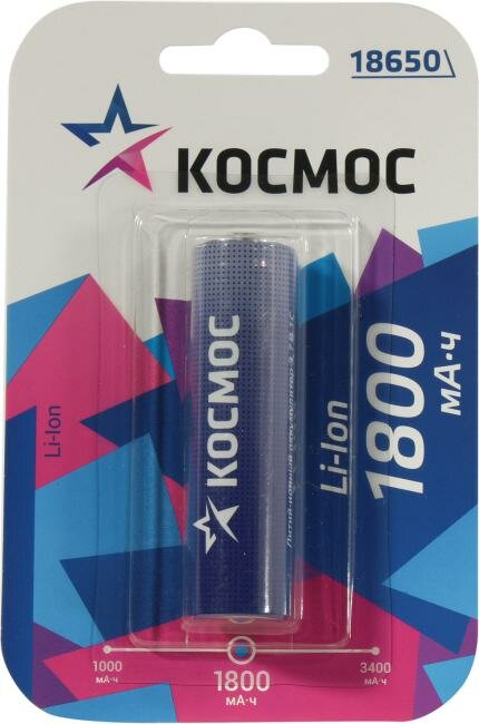 Аккумулятор Космос Li-ion 18650 Космос 1800 мАч, блистер 1 шт.