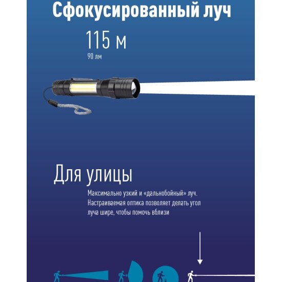 | Плюсы: | Отличный яркий фонарик. Покрывает большую площадь. Телескопическая линза можно менять дальность и диаметр луча. 2 фонаря в одном. Долго держит заряд. |