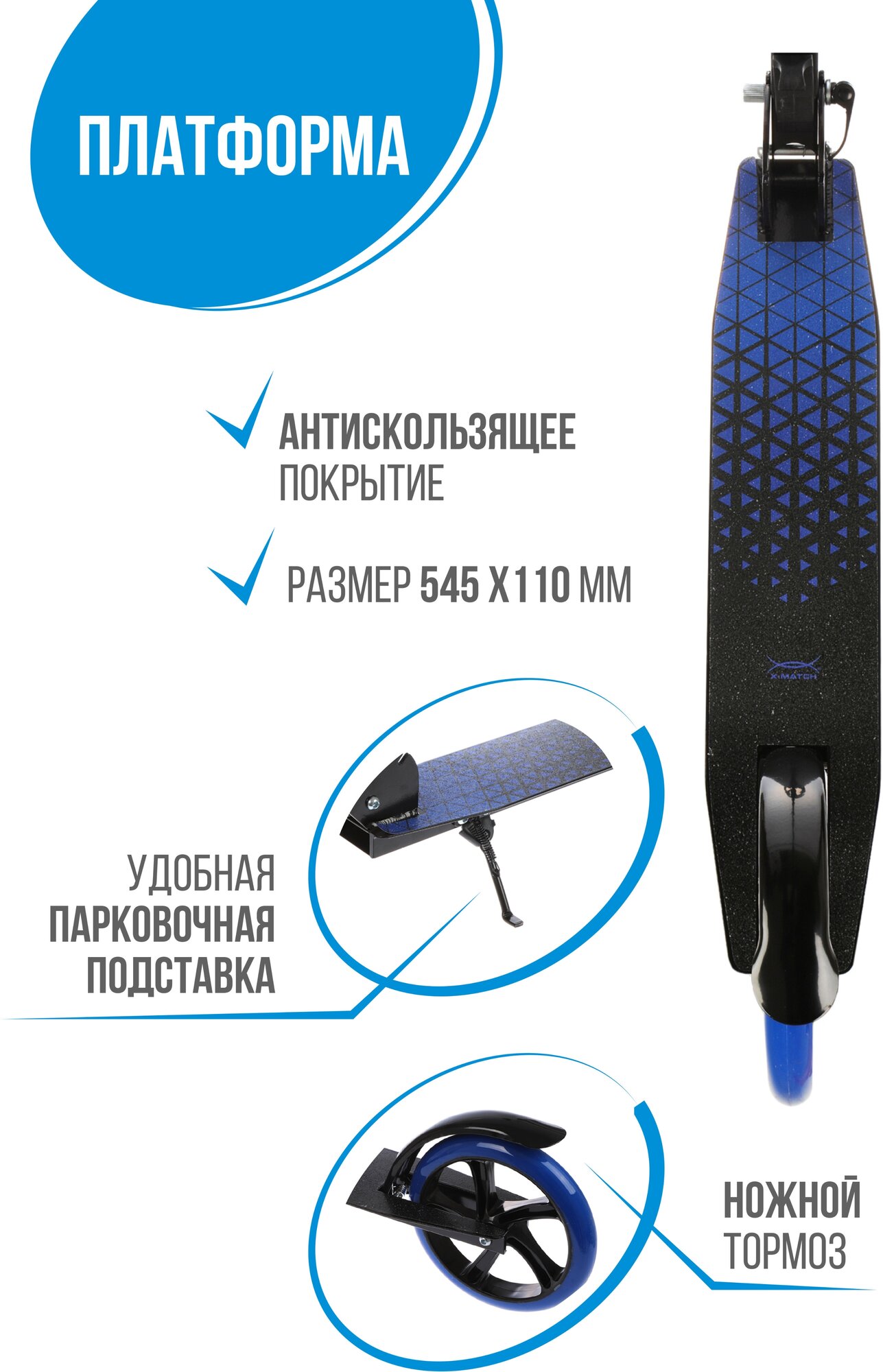 Купить Самокат "Дельта" колеса 200 мм. PU, платформа 545x110 мм. высота до 89 см. синий X-Match 641368