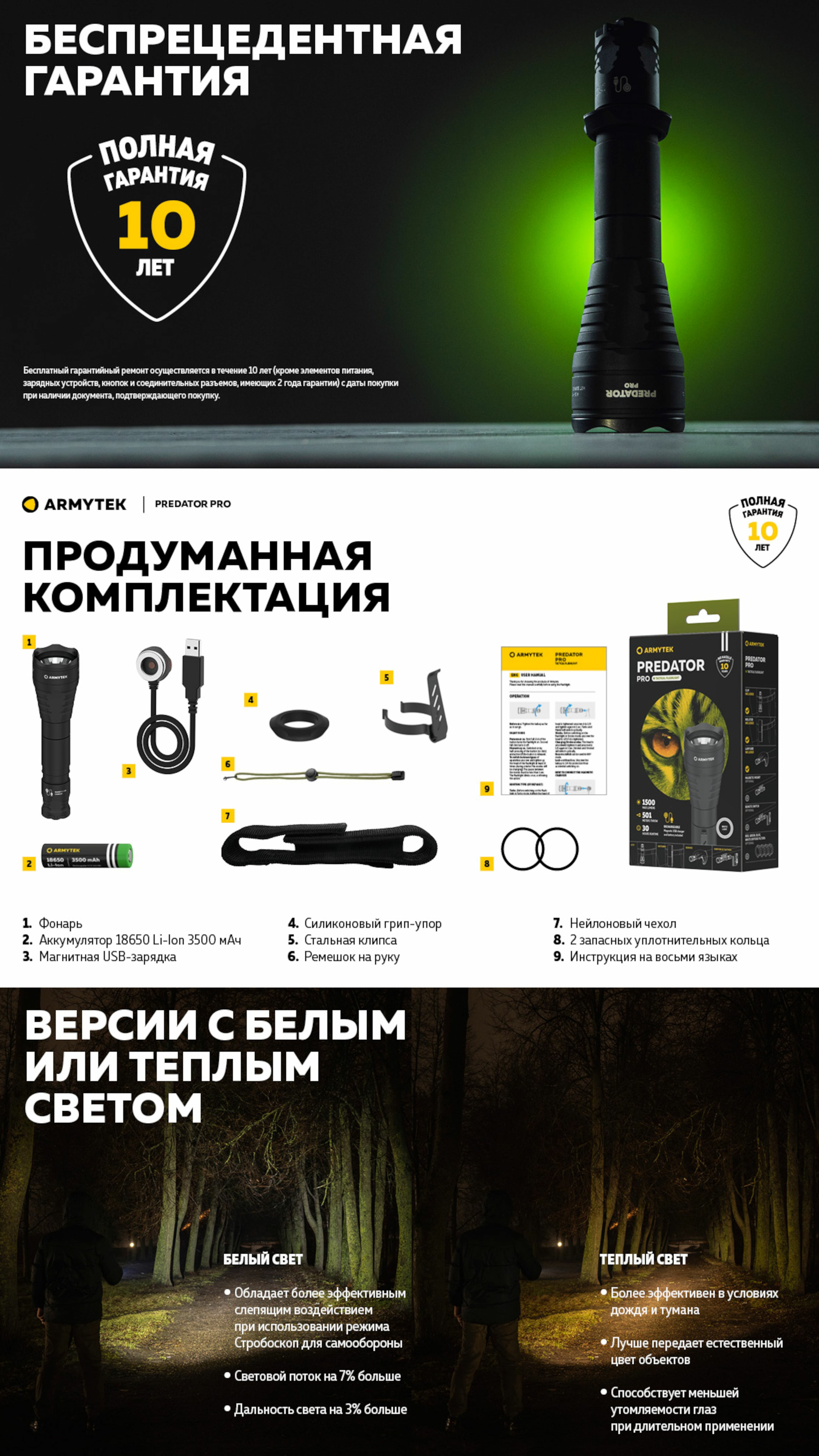 Фонарь Armytek Predator Pro Magnet USB F07301W Теплый Армитек Предатор ручной, походный, городской, светодиодный, тактический, EDC, для охоты интересное: