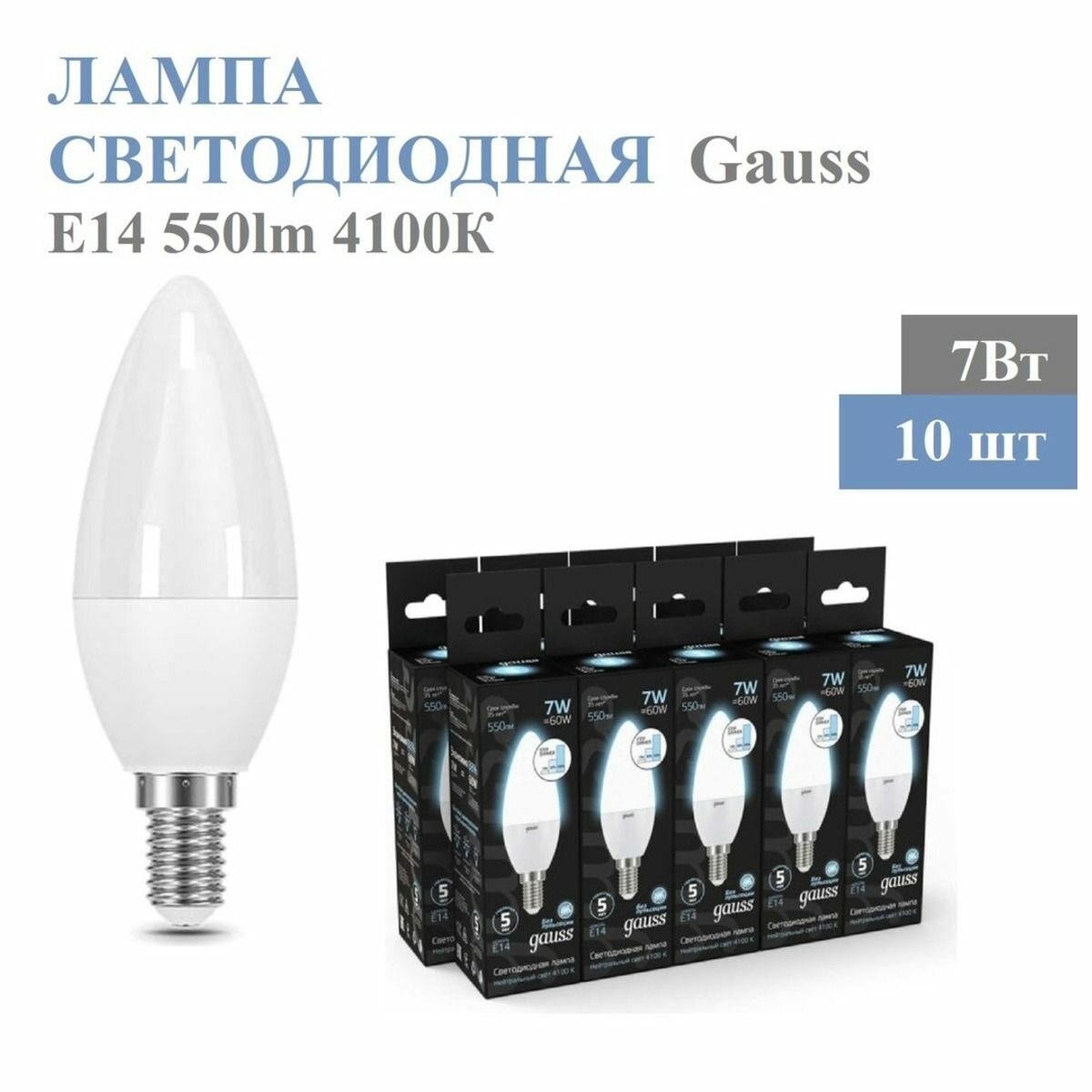 Упаковка ламп 10шт Gauss Свеча 7W 550lm 4100К E14 шаг. диммирование LED интересное: