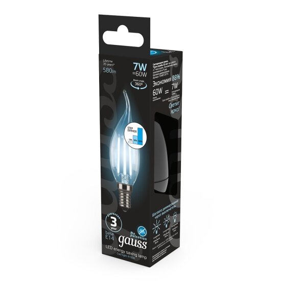Купить Светодиодная лампа Gauss LED Filament E14 7W 580lm 4100K step dimmable (пошаговое диммирование)