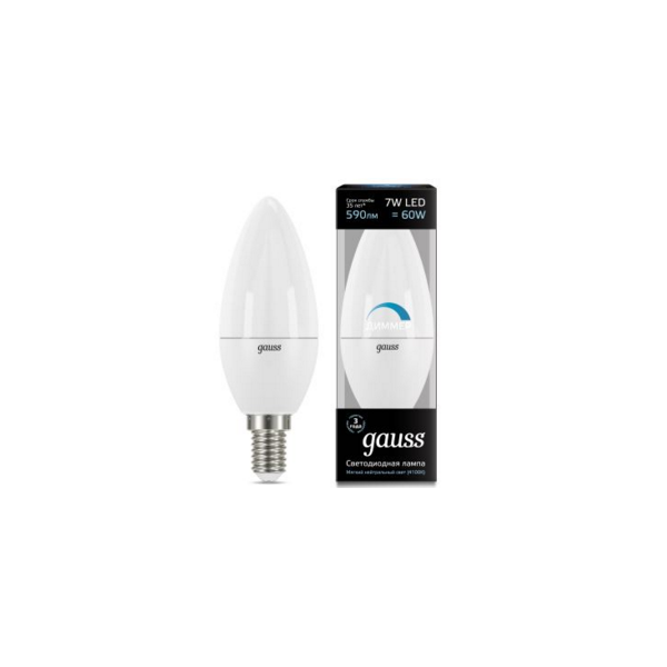 Лампа светодиодная GAUSS 7Вт Е14 LED 590Лм 4100К диммируемая свеча