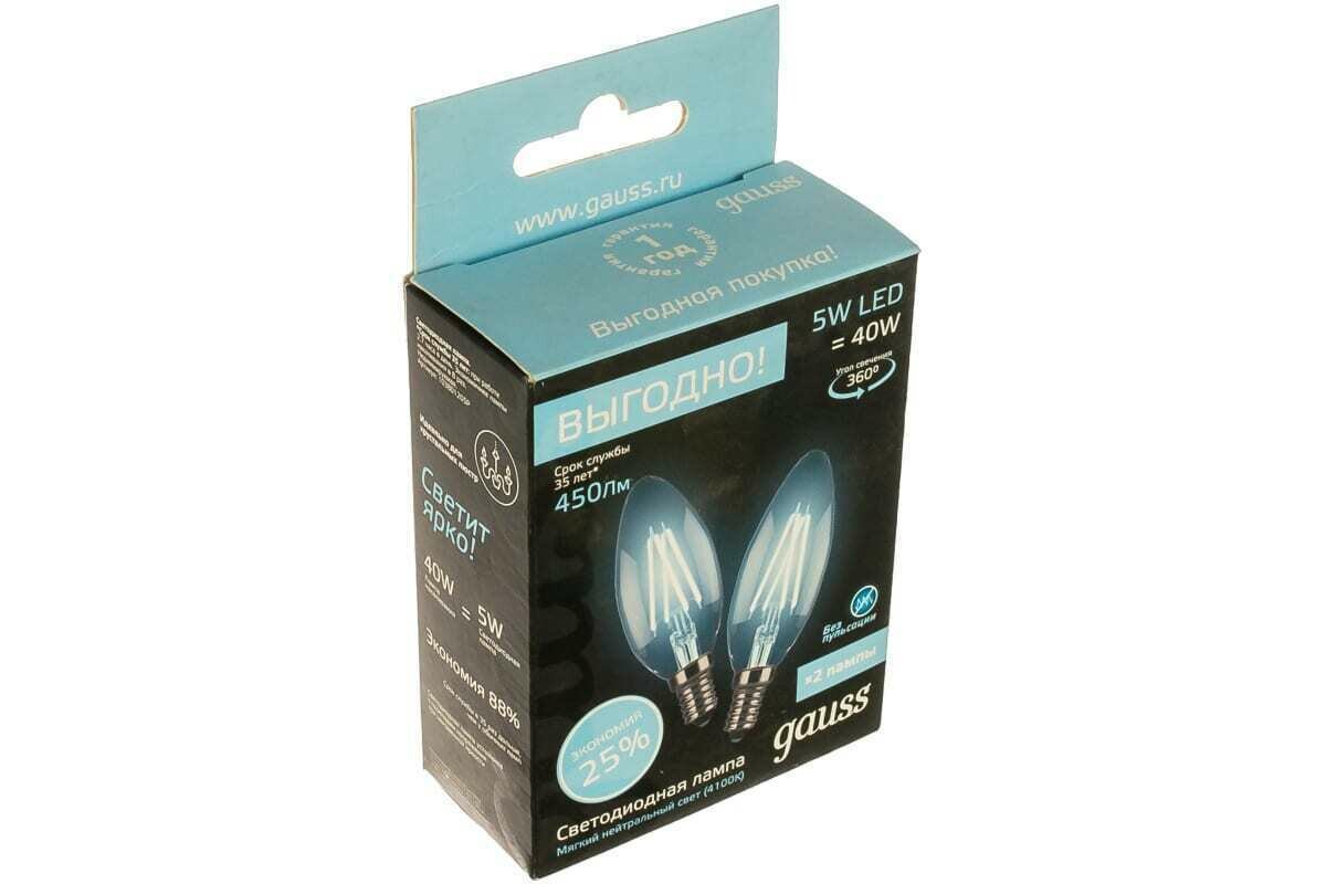 Gauss Лампа Filament Свеча E14 5W 4100К 2 лампы в упаковке SQ 103801205P