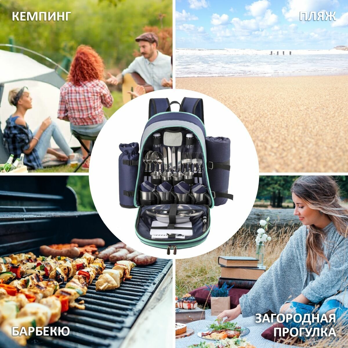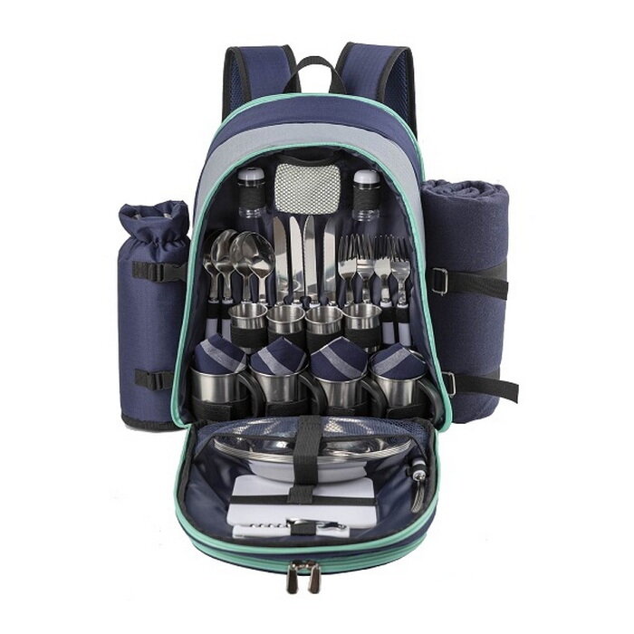 | Комплектация | - изотермическая сумка-холодильник; - тарелка 4 шт.; - чашки 4 шт.; - стаканы 4 шт.; - вилки 4 шт.; - ложки 4 шт; - нож 4 шт.; - нож для сыра/масла; - емкость для сыра/масла; - салфетки 4 шт.; - солонка; - перечница; - разделочная доска; - штопор; - плед. |