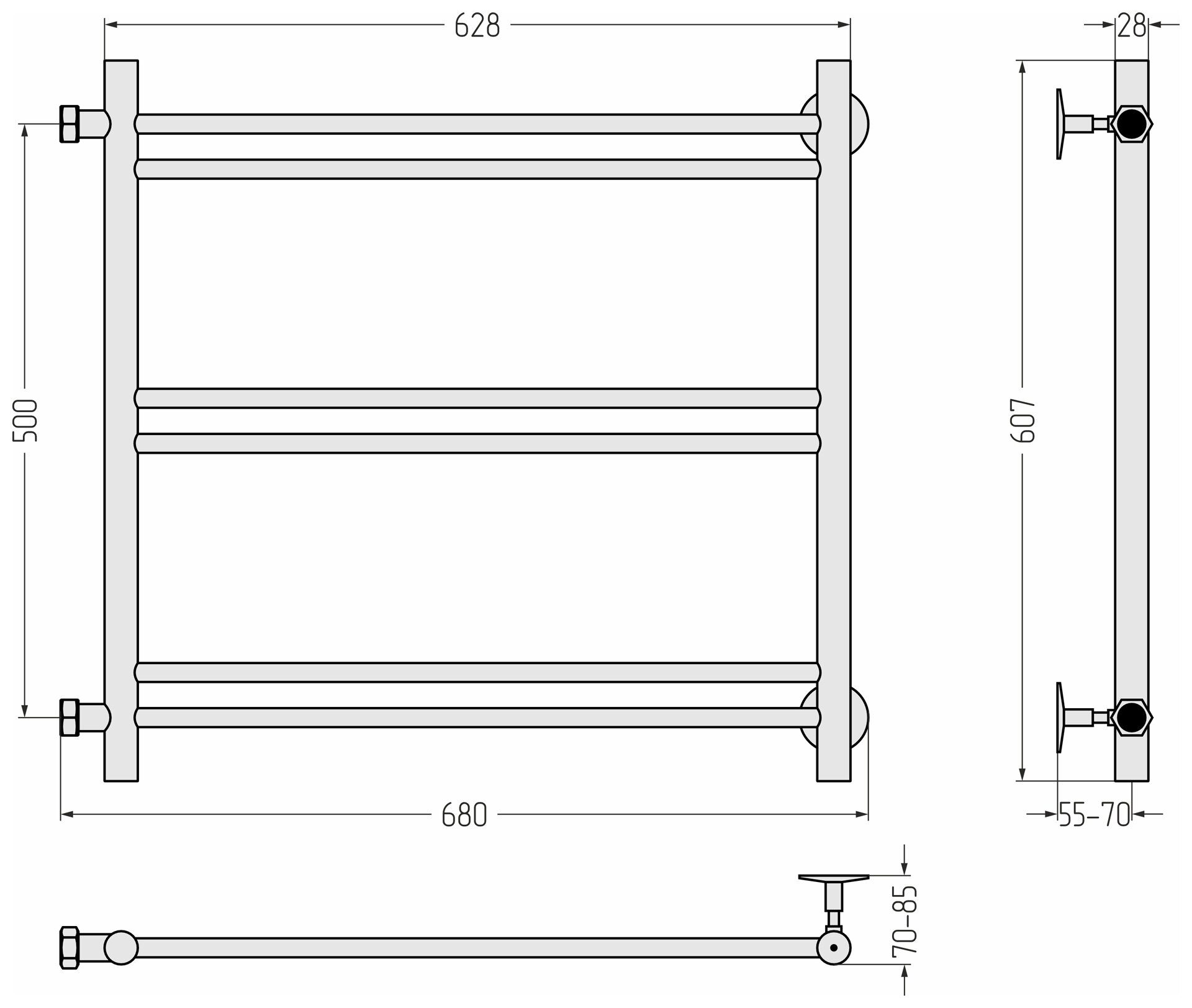 Полотенцесушитель водяной Стилье Версия-Б1 500х600 (2+2+2) П 16 Без покрытия