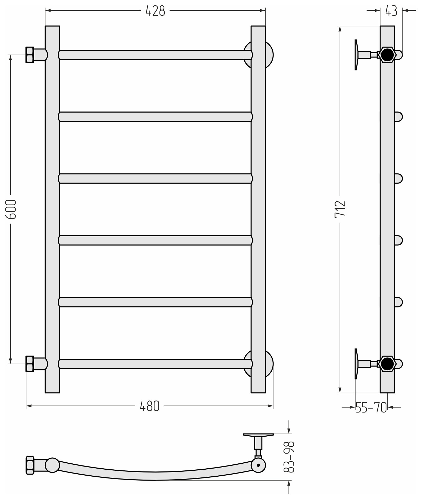 Полотенцесушитель водяной Стилье Версия-КБ 60x50
