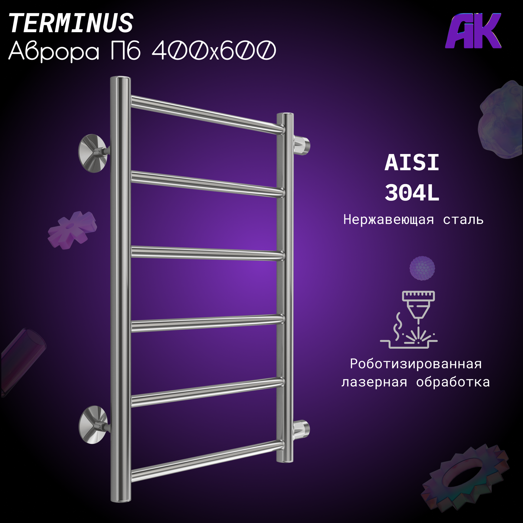 Полотенцесушитель Terminus Аврора П6 400x600 бп500 4670078529862