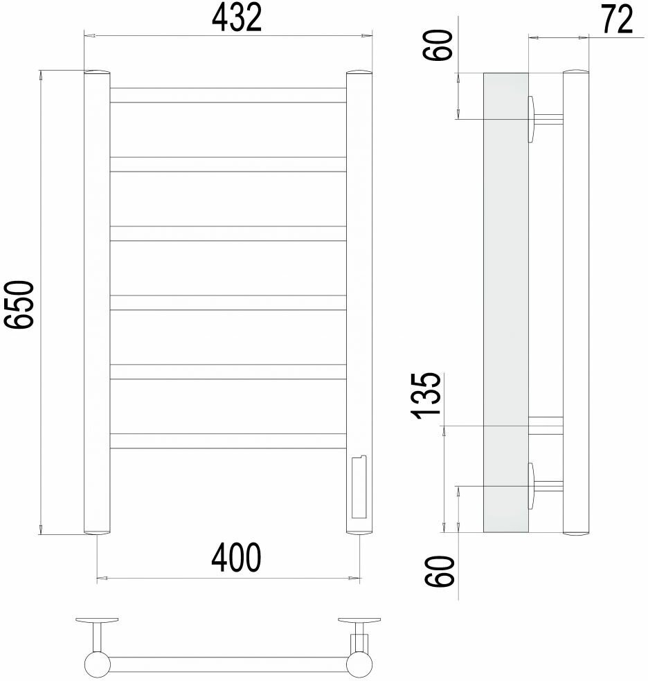 Полотенцесушитель Электрический Тругор Пэк сп 5 П 60х50 черный ВГП