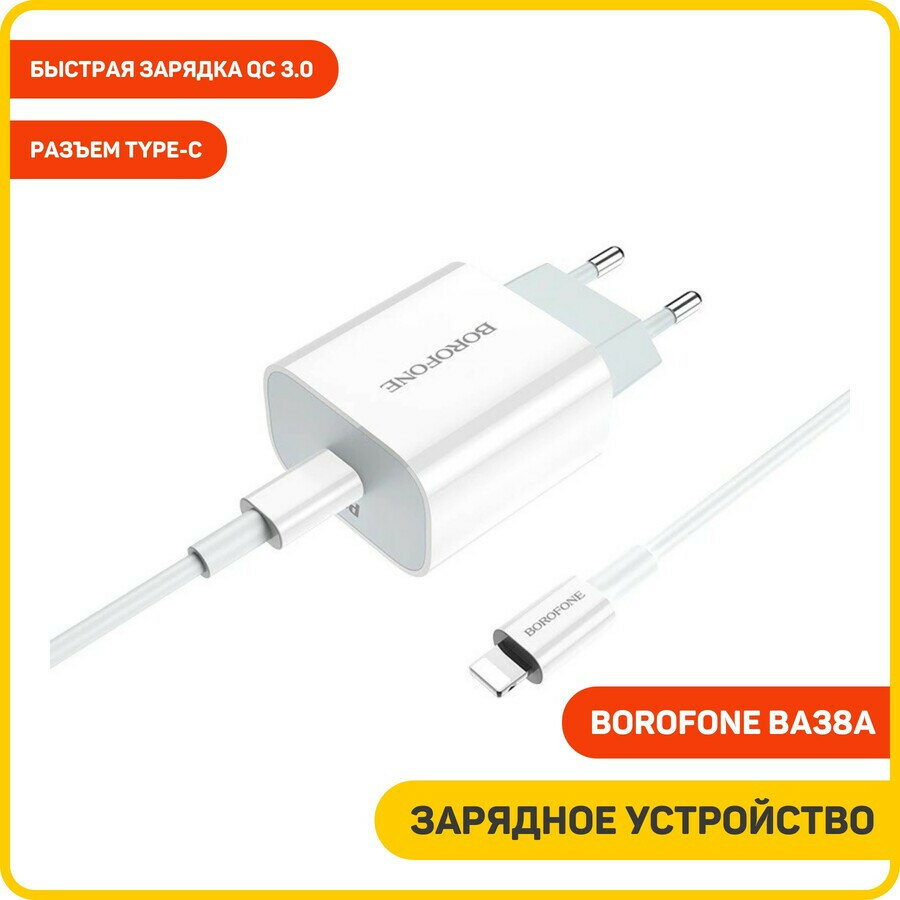 Сетевое зарядное устройство (СЗУ) Borofone BA38A Plus QC 3.0 (Type-C PD) + кабель Lightning, 3 А, белый