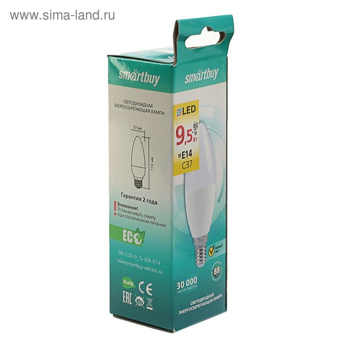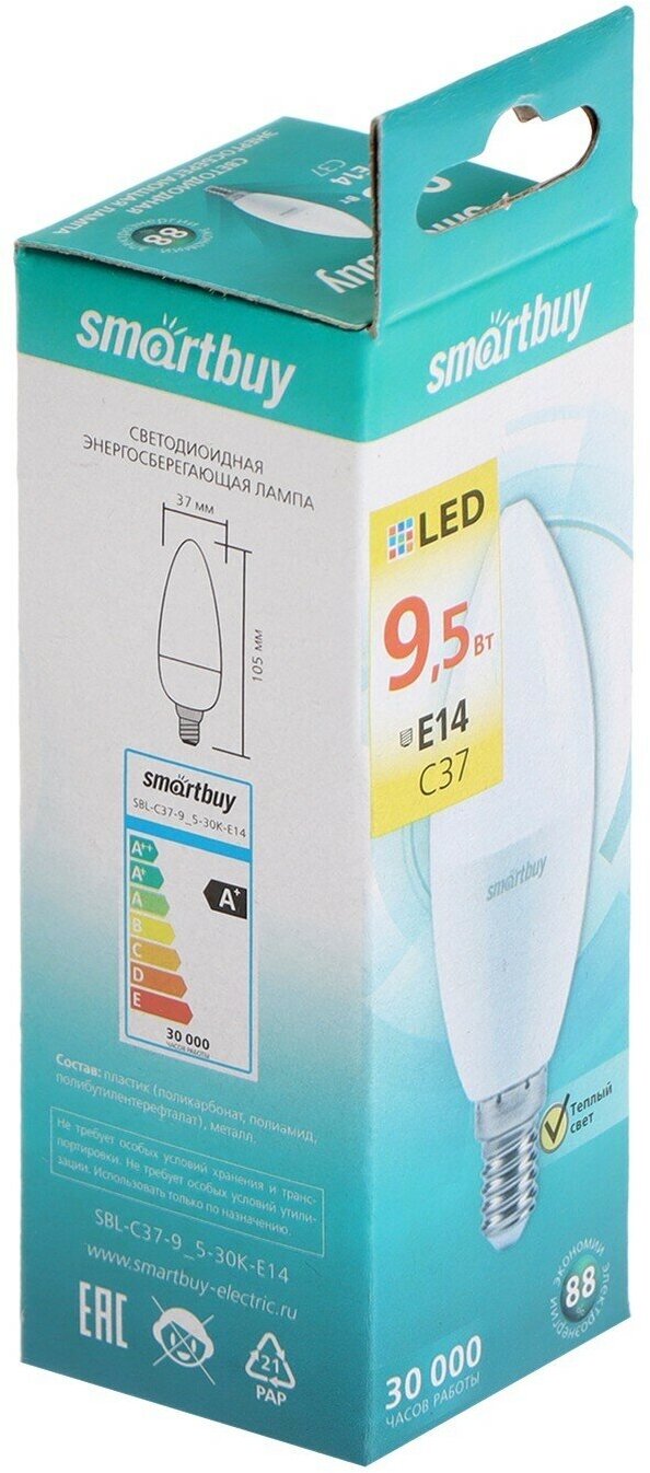 Лампа светодиодная Smartbuy, Е14, C37, 9.5 Вт, 3000 К, теплый белый свет интересное: