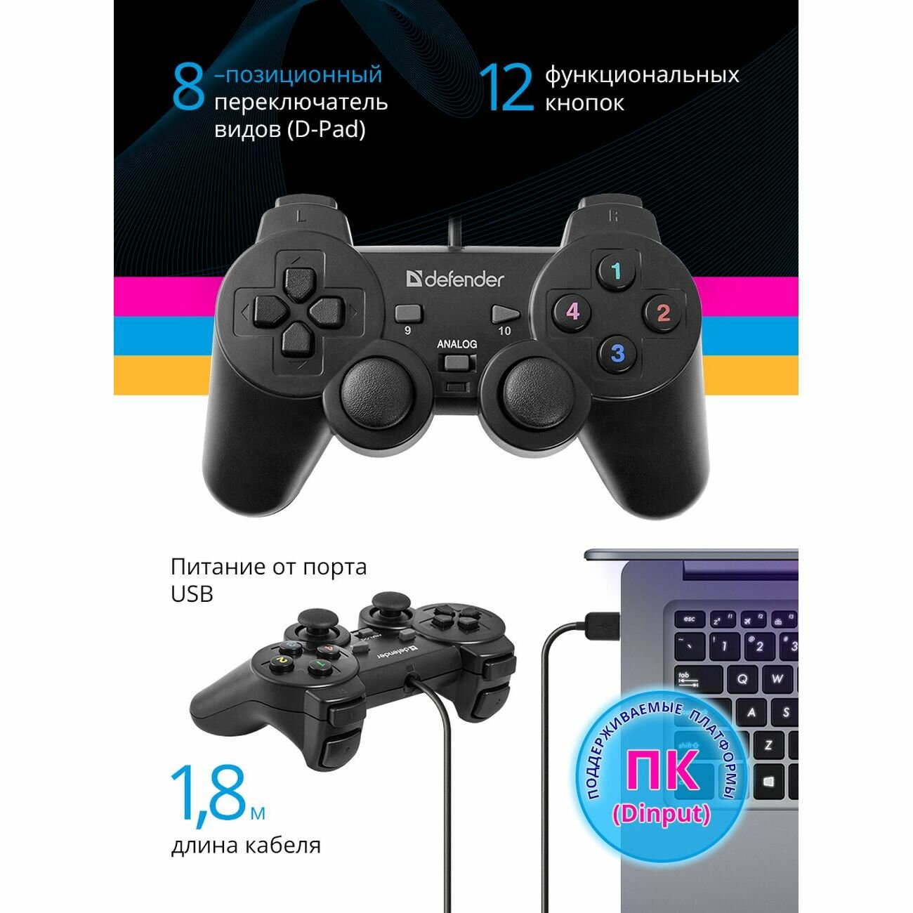 | Плюсы: | отличный геймпад по доступной цене |