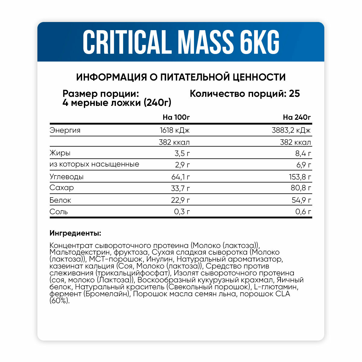 Critical Mass Professional, 6000 г, Vanilla / Ваниль