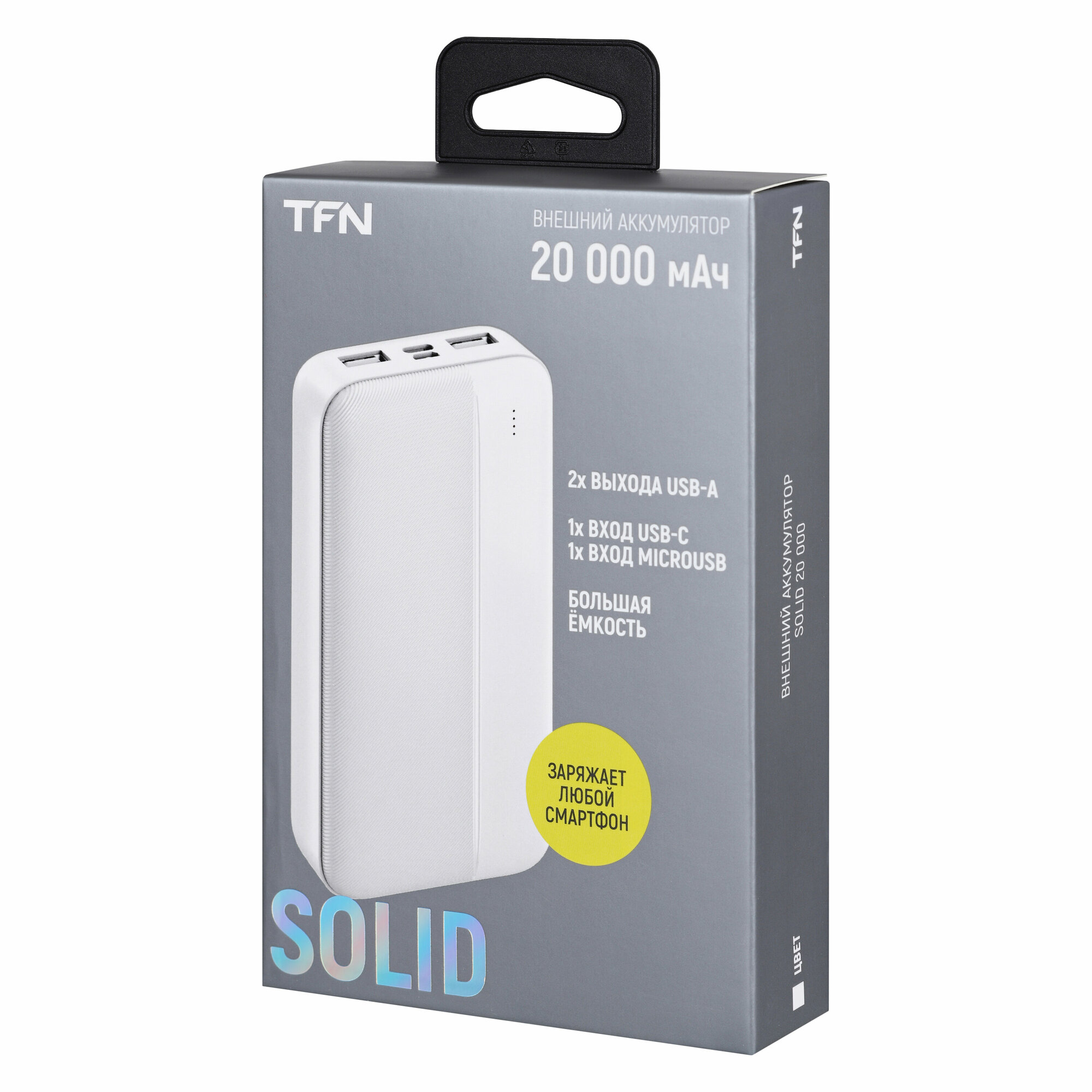 Внешний аккумулятор (Power Bank) TFN Solid PB-282, 20000мAч, белый [tfn-pb-282-wh]
