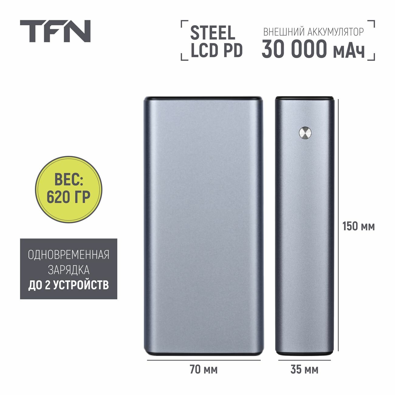 Купить Внешний аккумулятор TFN Steel LCD 30000 мАч grey (TFN-PB-275-GR)