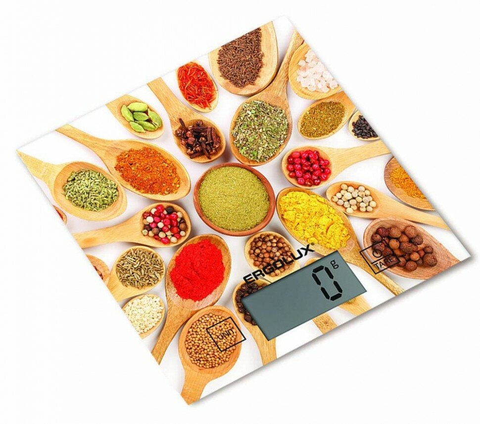 яркие приправы (весы кухонные до 5 кг, 150*150 мм), ERGOLUX ELX-SK01-С11 (1 шт.)