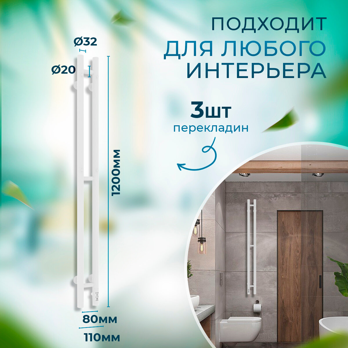 Полотенцесушитель электрический Laris Прайм Дуэт ЧК 80х1200 (круг) правое подключение RAL 9016 (белый матовый муар) с таймером и терморегулятором интересное: