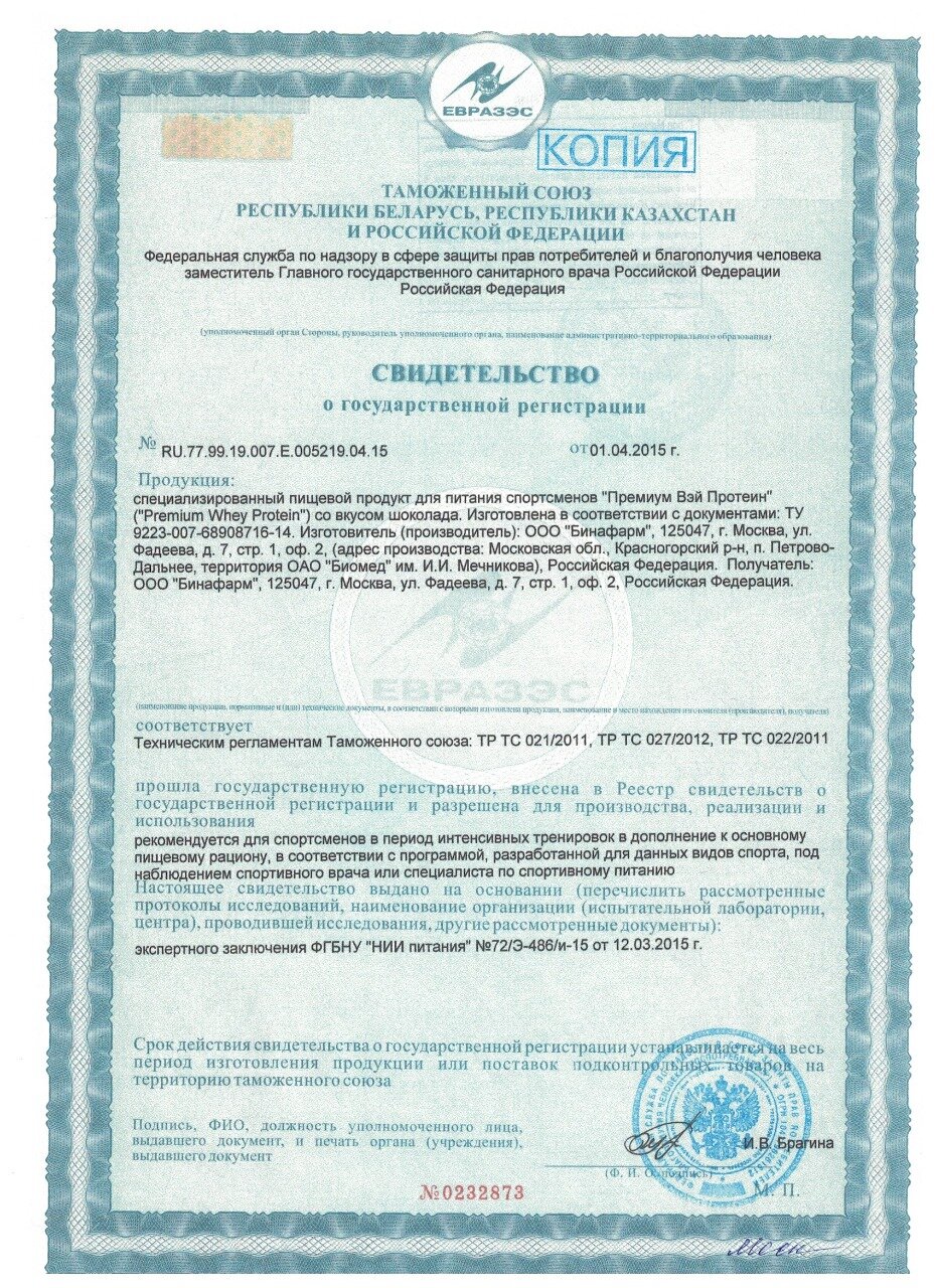 | Дополнительная информация | BINASPORT PREMIUM WHEY PROTEIN – высококачественный белковый продукт, состоящий из смеси изолята и концентрата сывороточного белка и натуральных вкусовых компонентов, произведенных ведущими европейскими компаниями. Изолят сывороточного белка, входящий в состав продукта, получен с помощью новейшей технологии мембранной ультрафильтрации напрямую из натурального молока (минуя этап производства сыра). Эта технология мягче традиционной и сывороточные белки получаются менее денатурированными, поэтому в Европе их называют «нативными» сывороточными белками. |