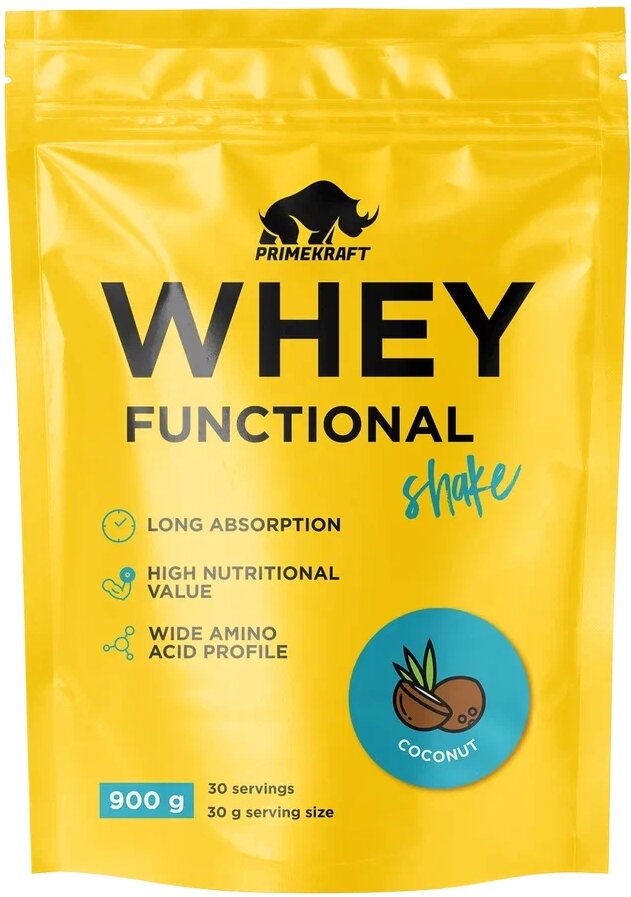 Протеин сывороточный Prime Kraft Whey Functional Shake (900 г) Кокос интересное:
