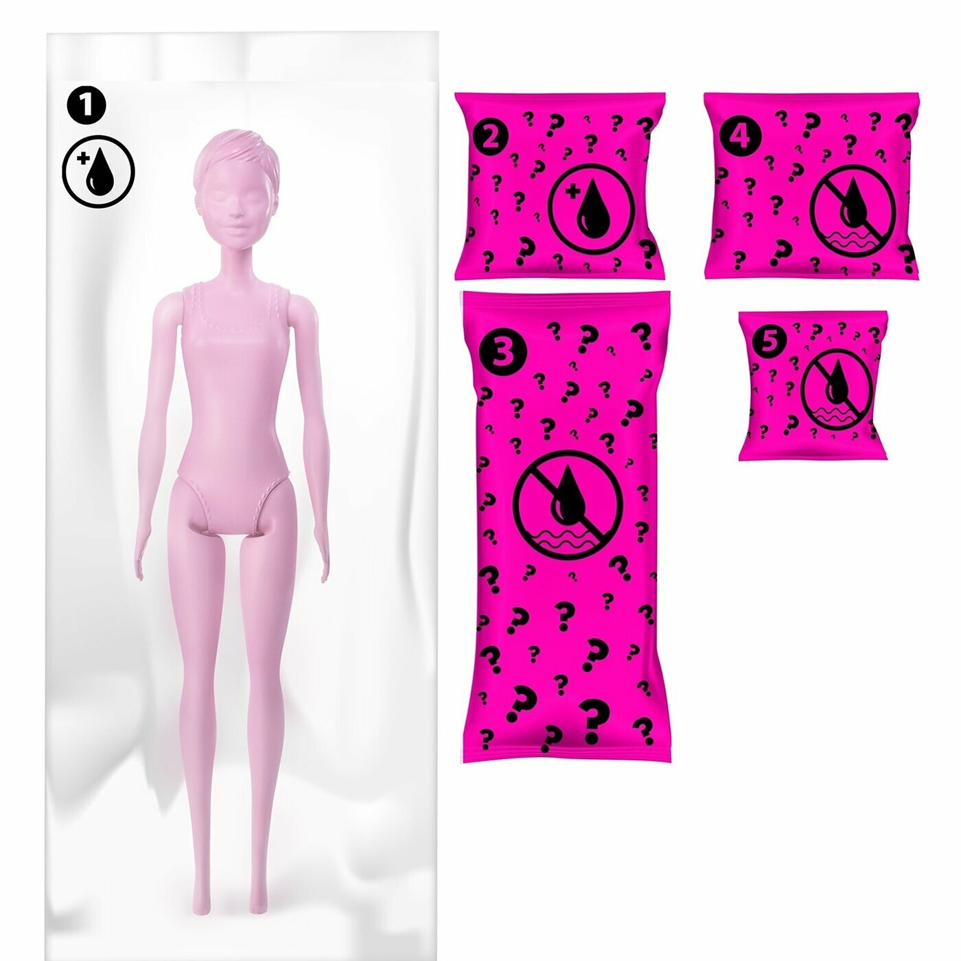 | Дополнительная информация | куклы Барби имеют различные комбинации цвета глаз, волос и декора купальника |