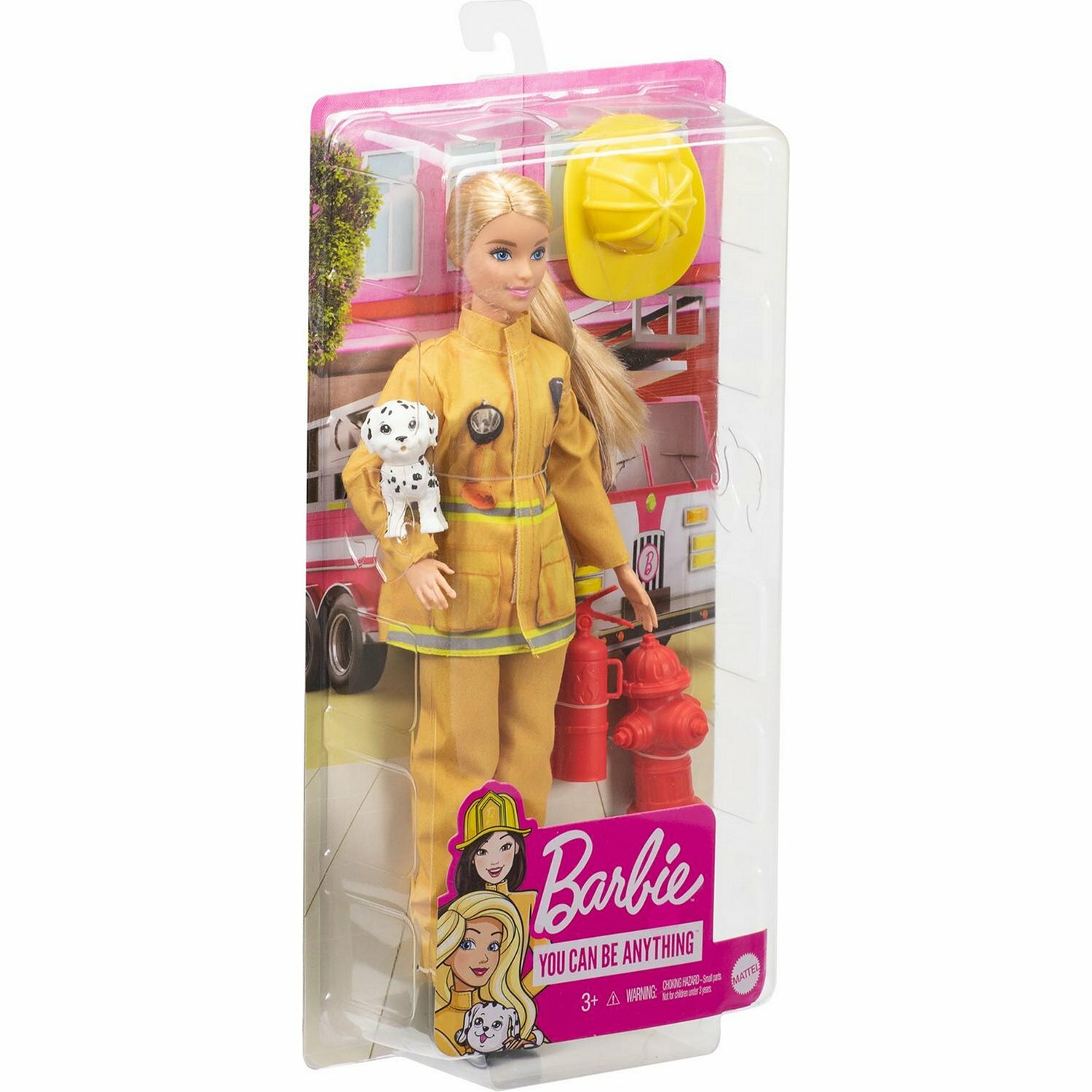 | Комплектация | 1 кукла Барби в костюме пожарного, 1 фигурка питомца, аксессуары |