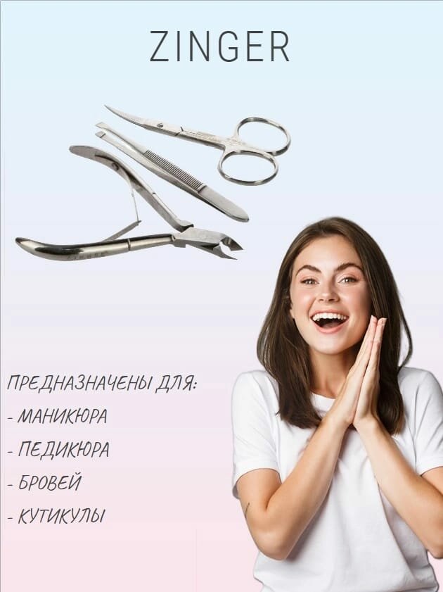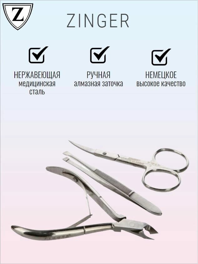Набор для маникюра (маникюрные ножницы, кусачки, пинцет) zo-Sis-42-S Zinger