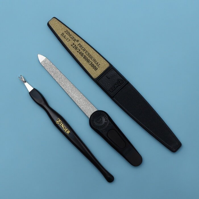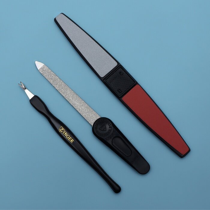 Купить Набор маникюрный, 3 предмета, на блистере, цвет чёрный/золотой, SIS-09