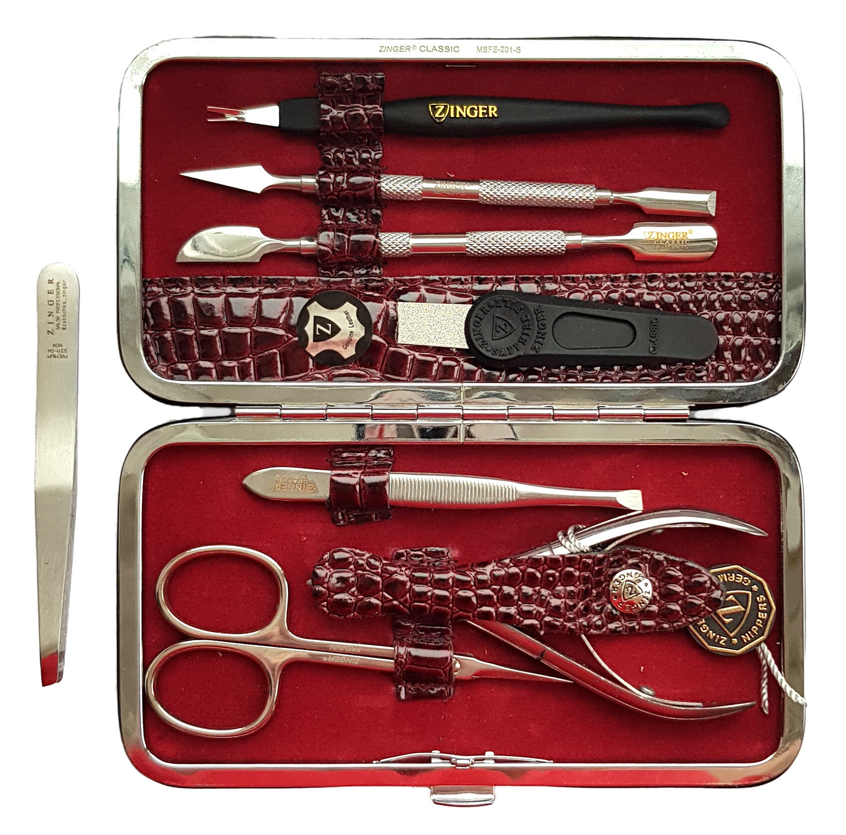 Купить Маникюрный набор Premium-качества Zinger MSFE-201-3 S, красно-коричневый, 7 предметов + пинцет