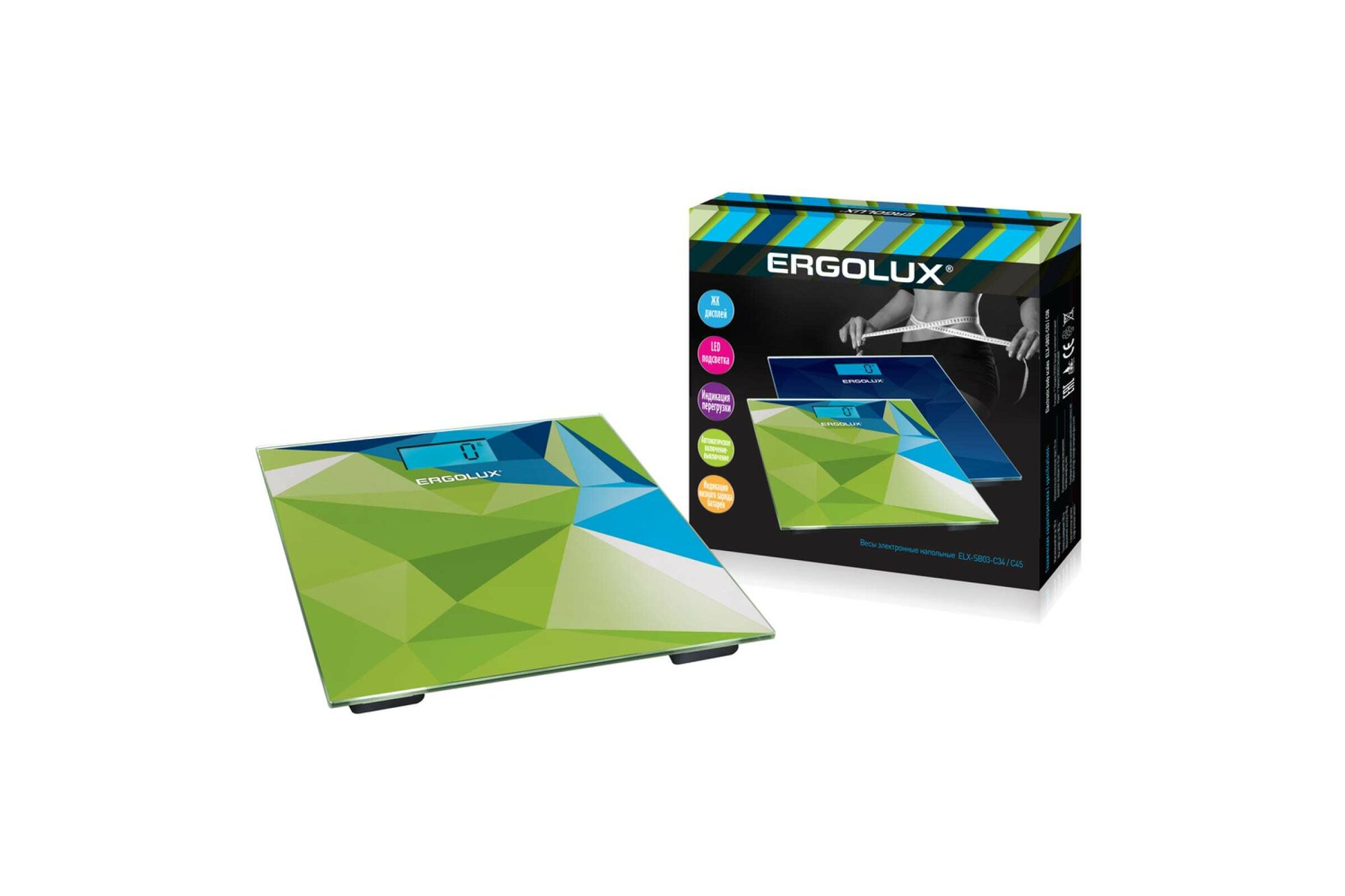абстракция зелено-синяя ( весы напольные до 180 кг, LED подсветка), ERGOLUX ELX-SB03-C34 (1 шт.)