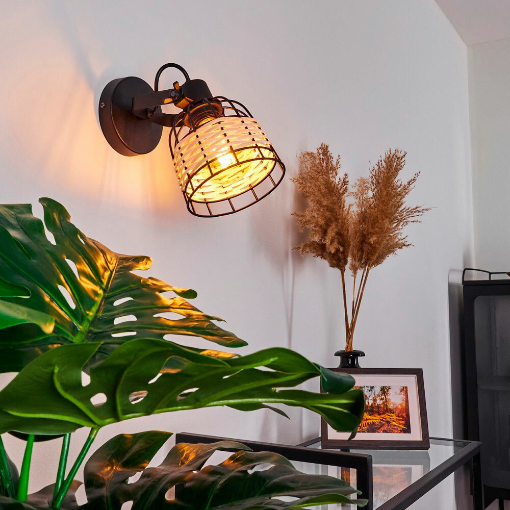 Купить 43324 Светильник настенно-потолочный ANWICK 1, 1x40W(E27), сталь, черный/ротанг, натуральный