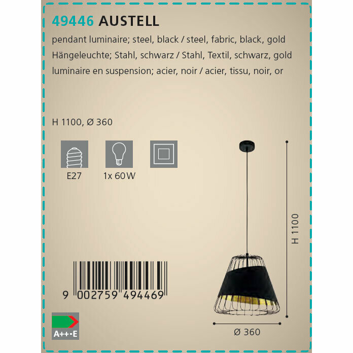 Светильник подвесной Eglo Austell 49509, Черный, E27 60
