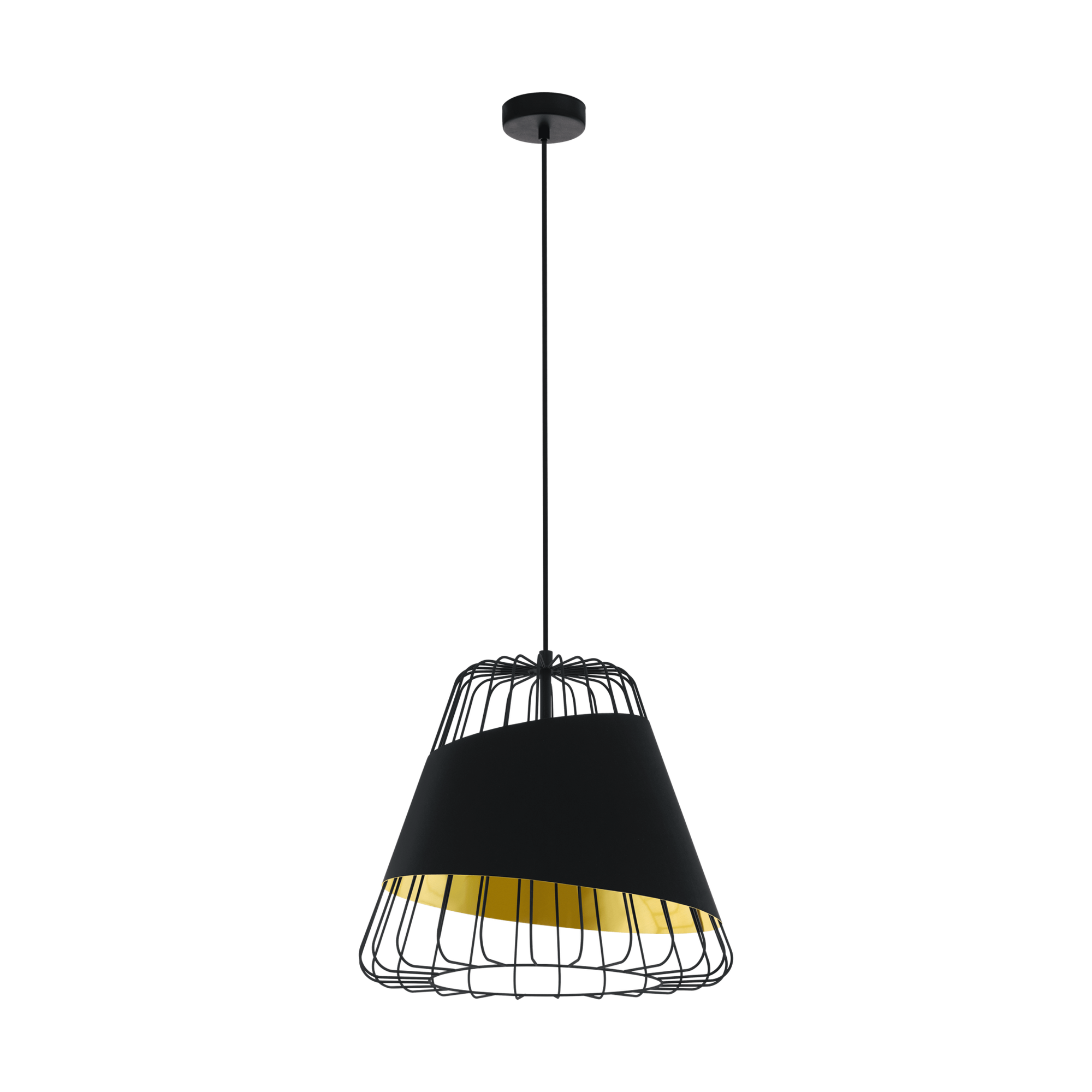 49509 Подвес AUSTELL, 1х60W (E27), Ø430, H1100, сталь, черный/текстиль, черный, золотой