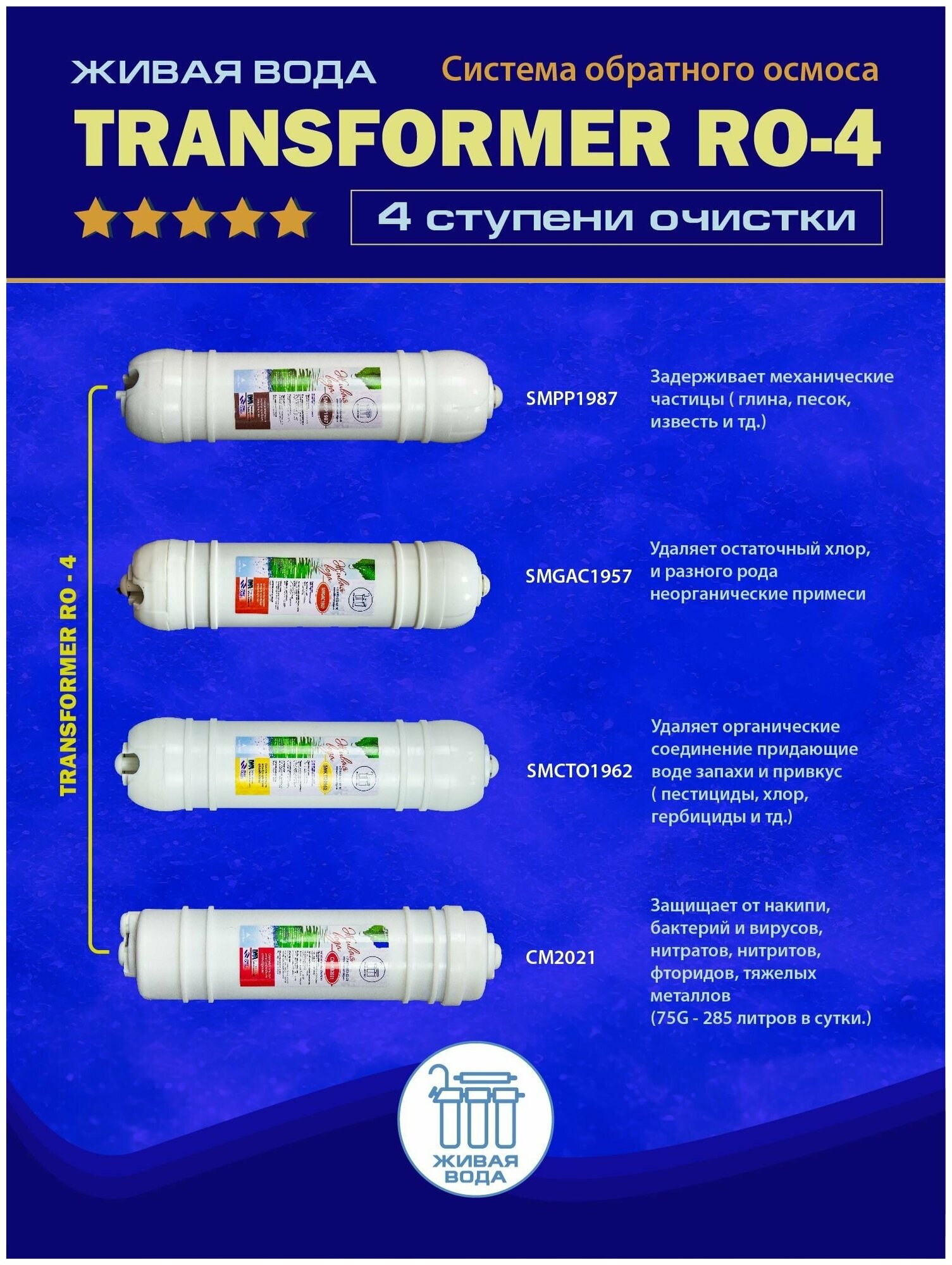 Фильтр для воды обратного осмоса "Живая Вода" Transformer RO 4 c активированным кокосовым углем интересное: