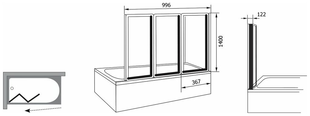| Плюсы: | - подойдёт для большинства ванн, спокойно складывается и смеситель не задевает, в отличии от двухстворчатой по 50см