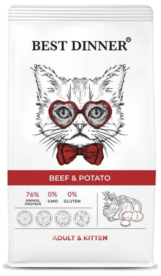 Купить Корм для кошек сухой Best Dinner Adult & Kitten Beef & Potato / для котят и взрослых кошек / кошачий корм Говядина с картофелем / 1,5 кг