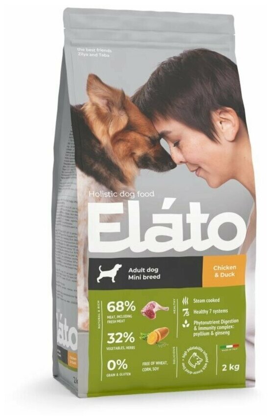 Купить Сухой корм Elato Holistic для взрослых собак мелких пород с курицей и уткой, 2кг