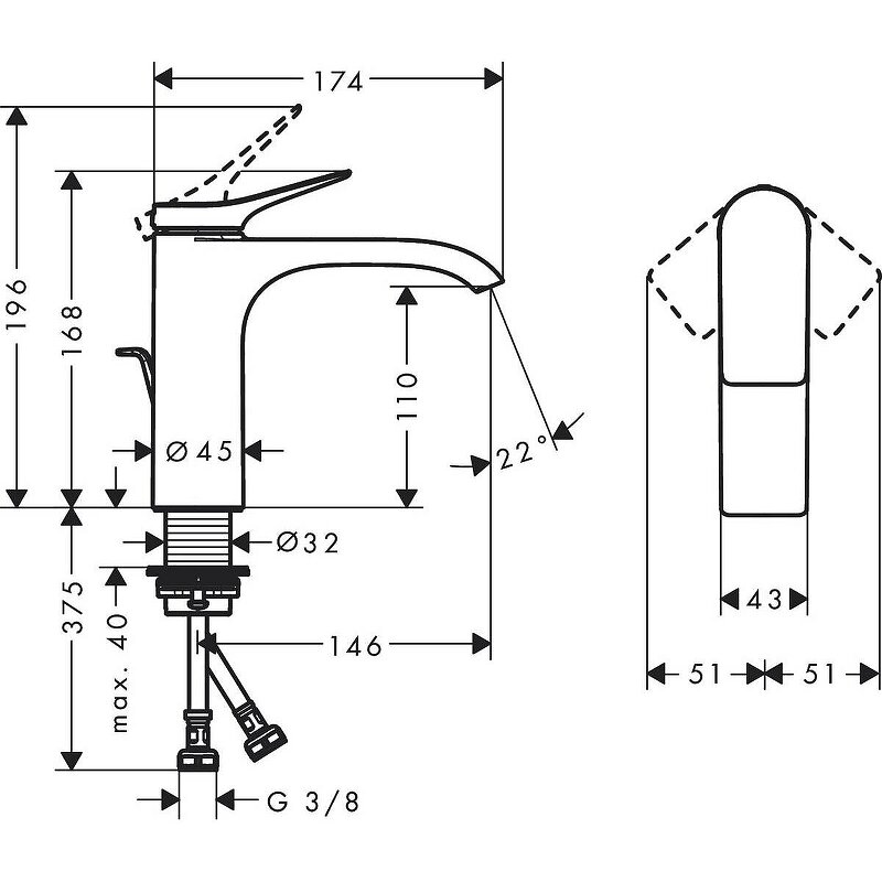 Hansgrohe 75012000 Vivenis 80 Смеситель для раковины, без донного клапана, хром