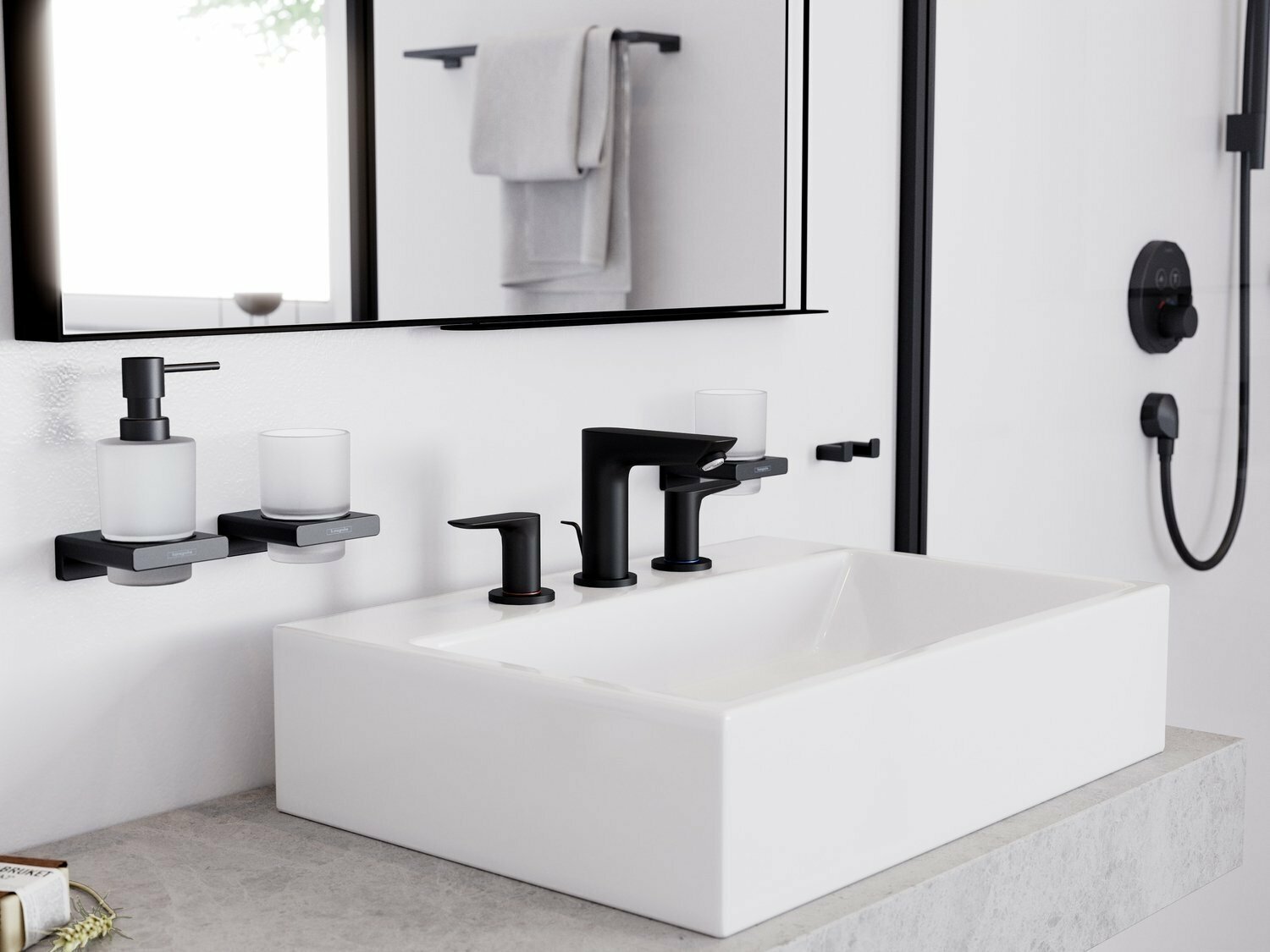 Смеситель для раковины hansgrohe Talis E 71733670 на 3 отверстия, со сливным гарнитуром, матовый черный