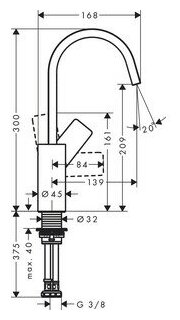Смеситель для раковины, однорычажный, 210 с поворотным изливом, без сливного гарнитура