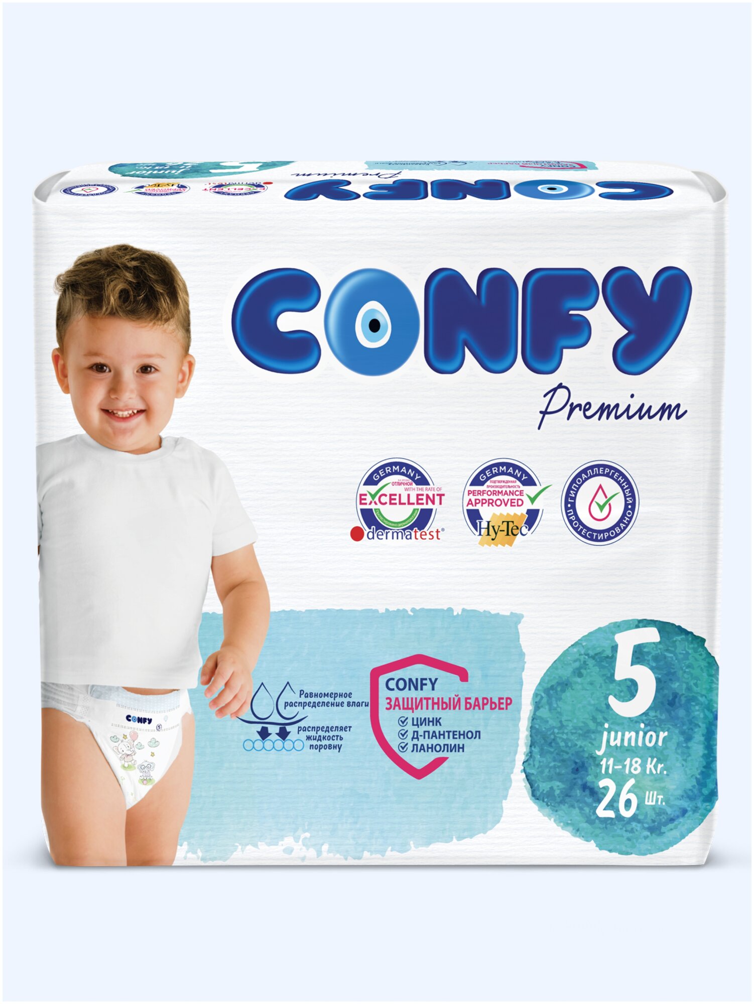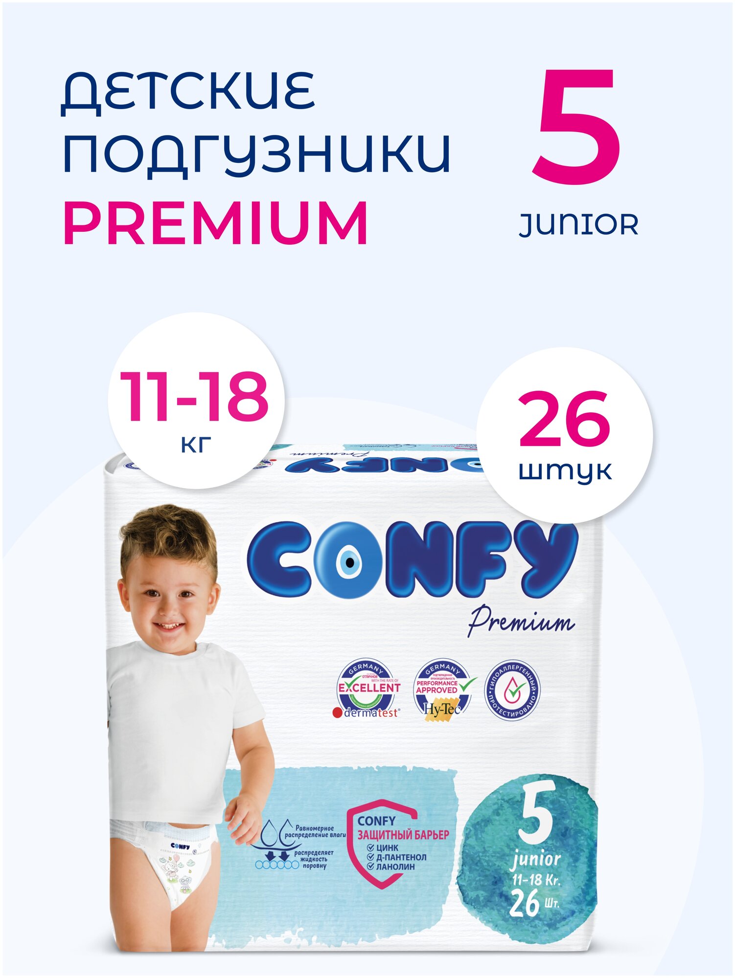 Подгузники Confy Premium Junior детские для мальчиков и девочек, 5 размер 11-18 кг, 26 шт