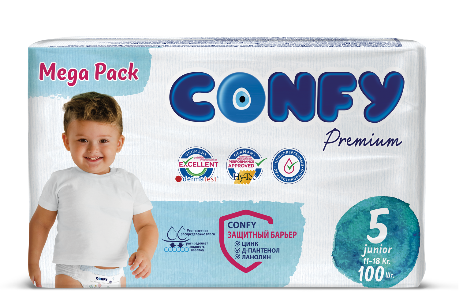 Подгузники детские CONFY Premium JUNIOR MEGA размер 5, 100 шт