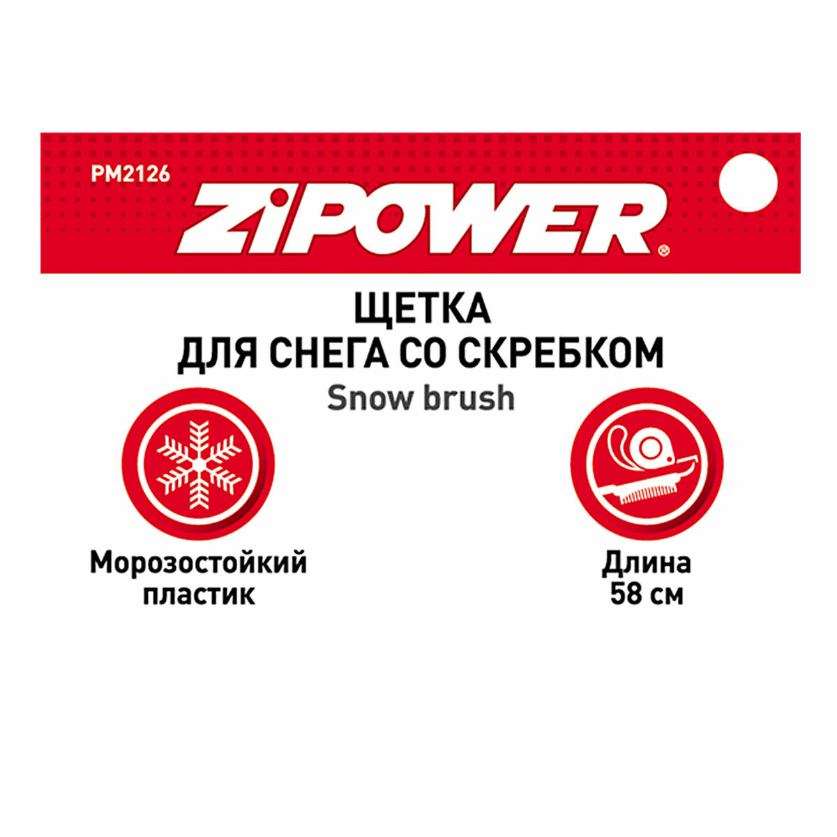 Щетка для снега со скребком ZIPOWER, морозоустойчивый пластик, эргономичная рукоятка, 58 см