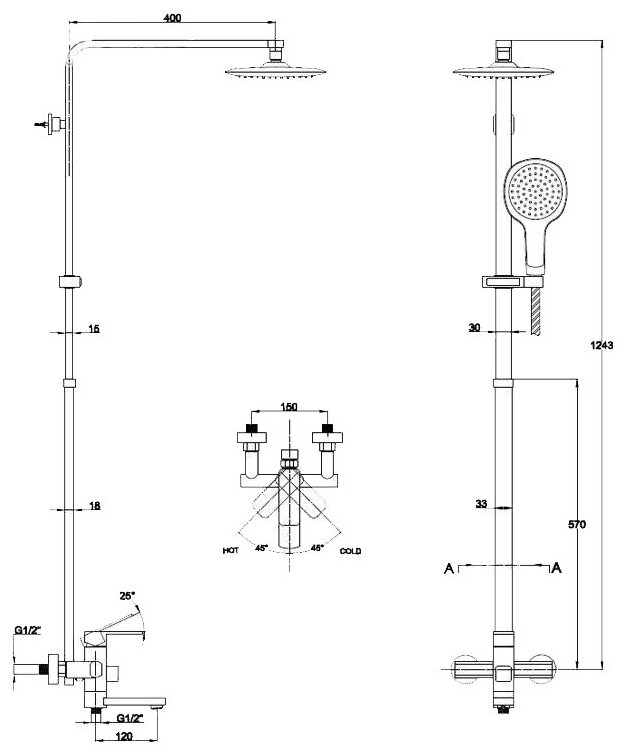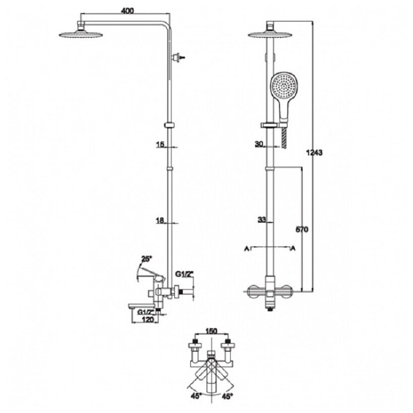 | Дополнительная информация | высота стойки для душа: 1243 мм |