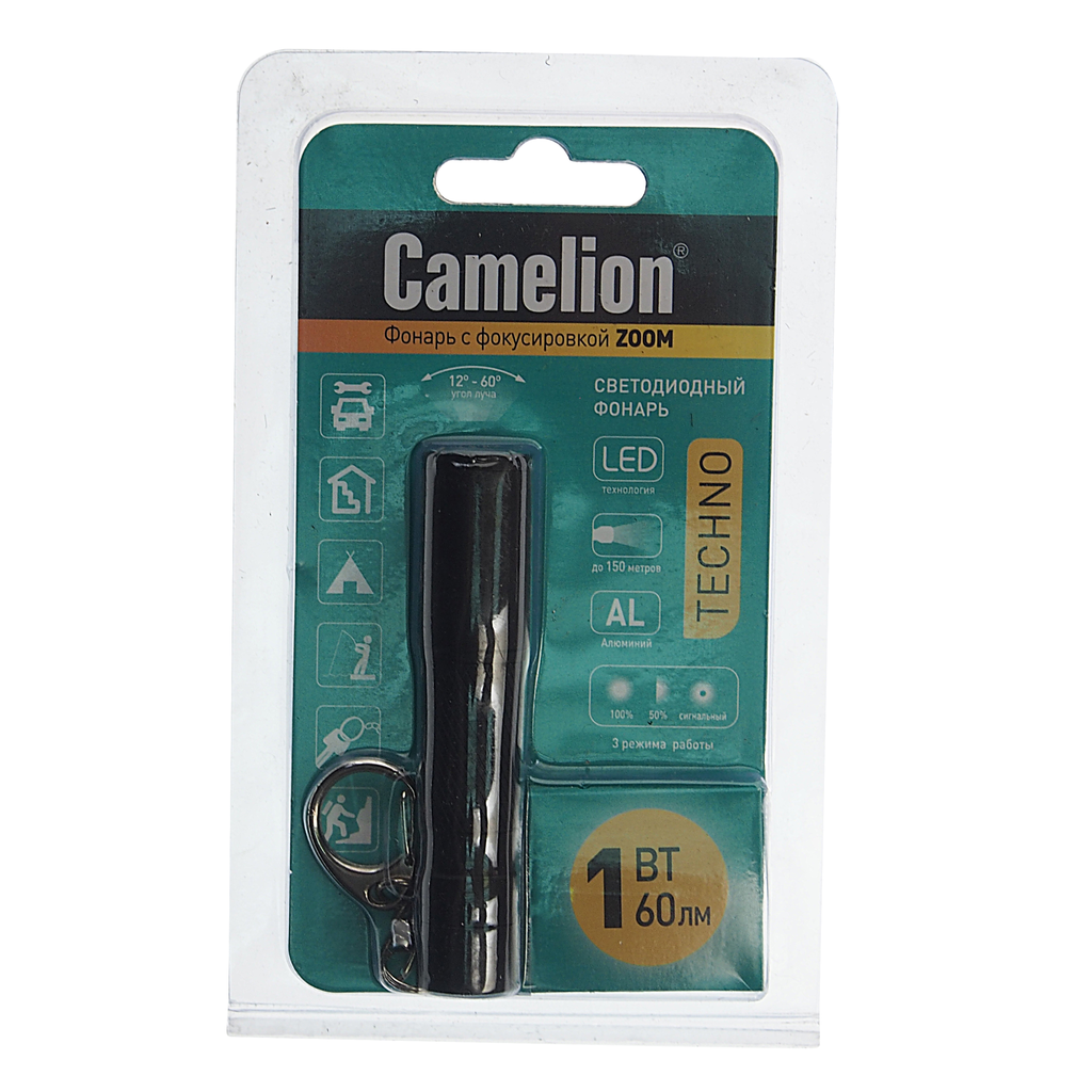 Фонарь компактный CAMELION XP-E, яркий, ZOOM, 3 режима, питание 1хAAА(не в комплекте), LED51532