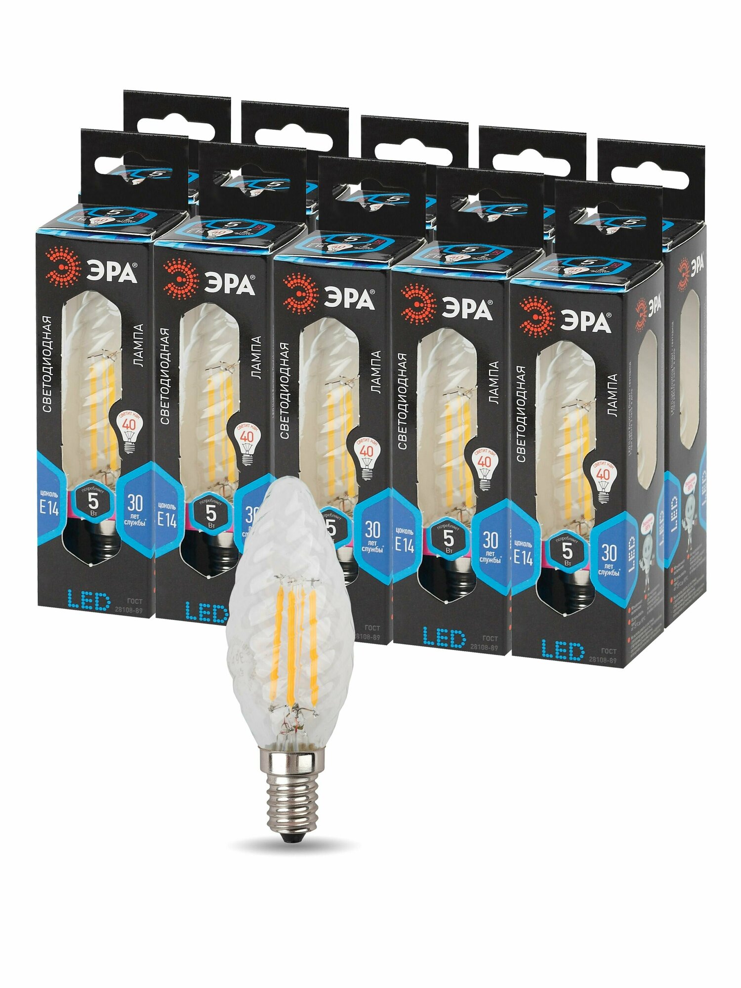 Лампочка светодиодная ЭРА F-LED BTW-5W-840-E14 Е14 5Вт филамент свеча витая белый свет, 10шт интересное: