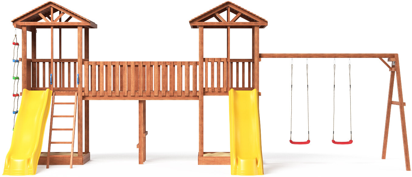 Детская площадка для улицы и дачи окрашенная. Детский игровой комплекс спортивный уличный для дачи во двор с двумя горками, качелями и песочницами СГ6-Р912