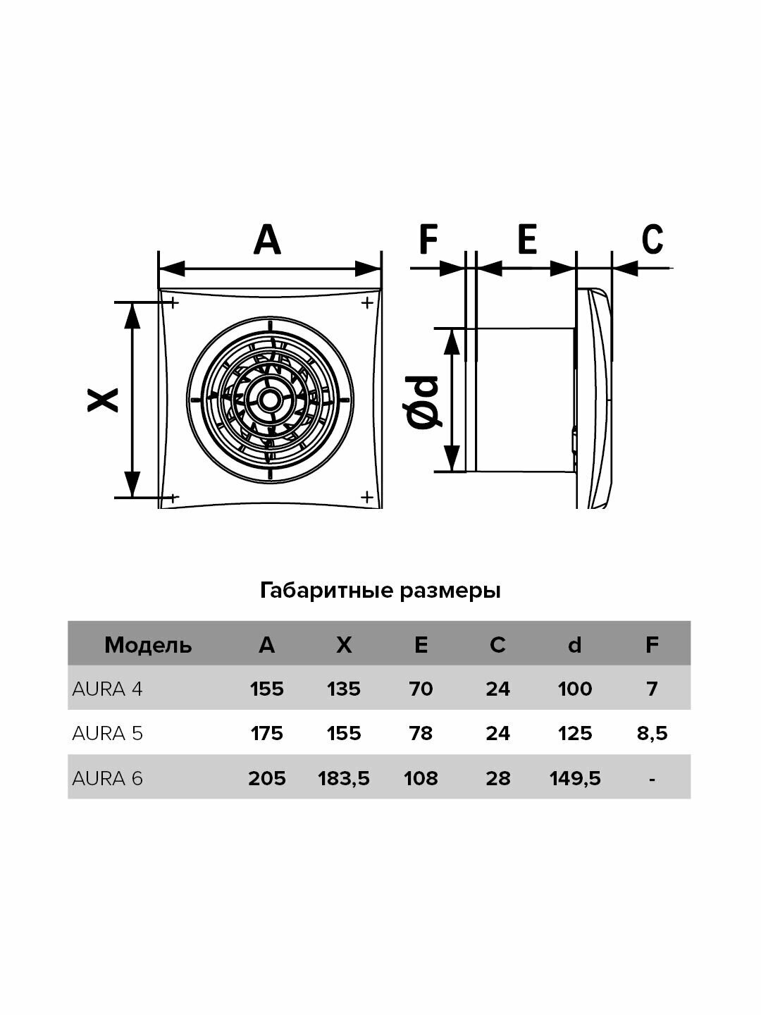 AURA 5C вентилятор вытяжной c обратным клапаном на шарикоподшипниках D125