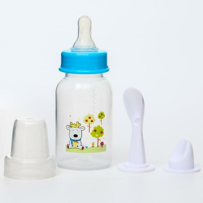 Бутылочка для кормления, Бутылочка для кормления 3 в 1, в комплекте ложка и носик-поильник, 125 мл, от 0 мес. интересное: