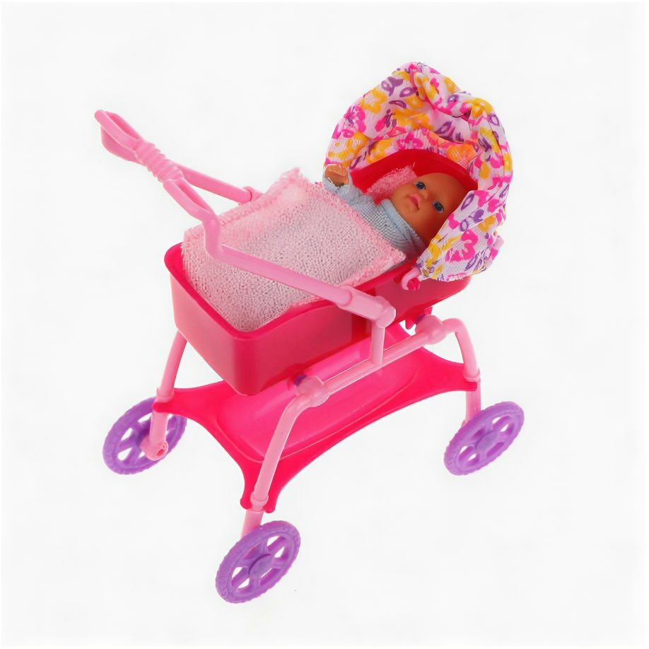 Кукла барби мама и малыш в коляске