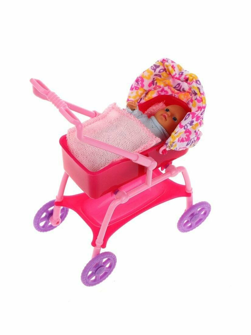 Кукла барби мама и малыш в коляске